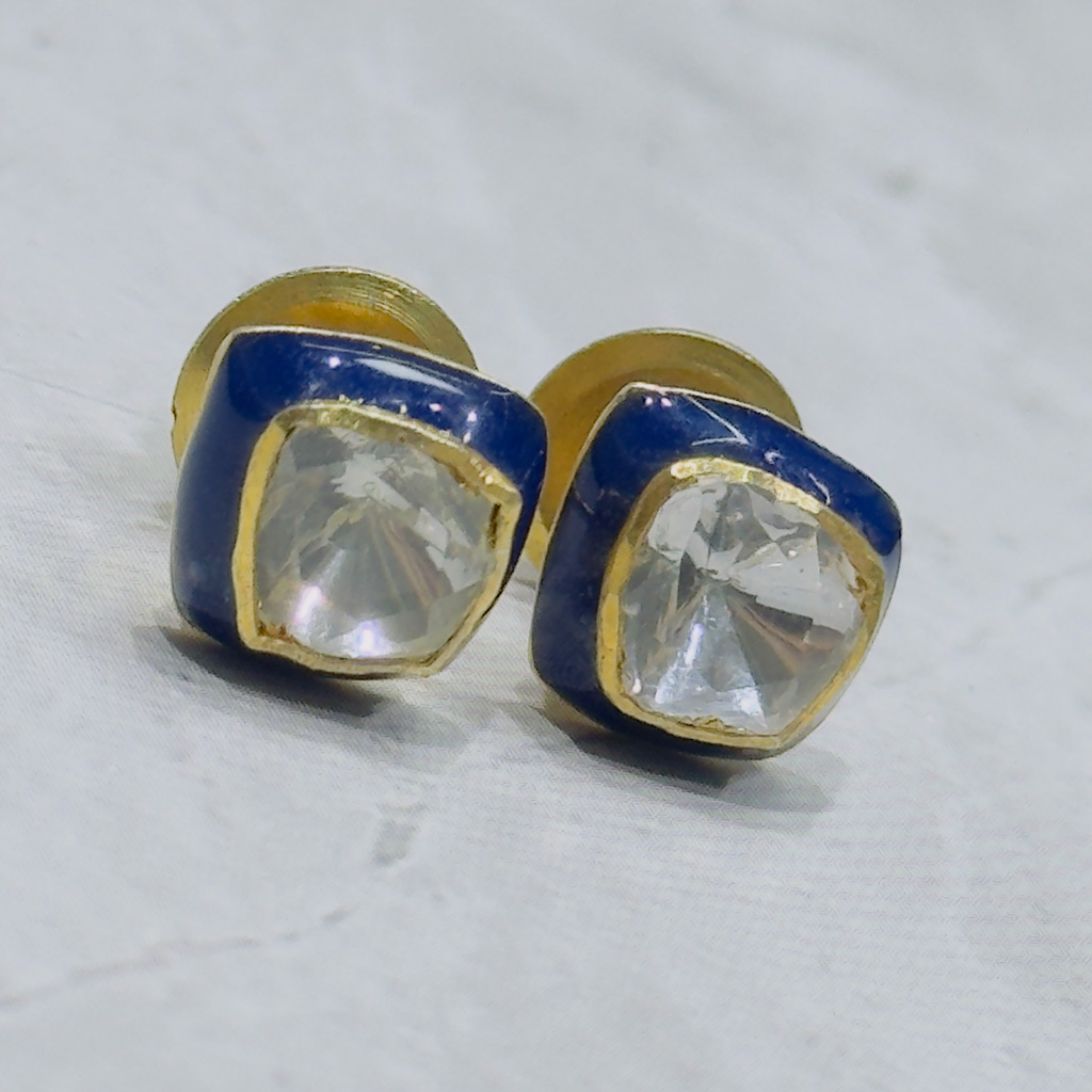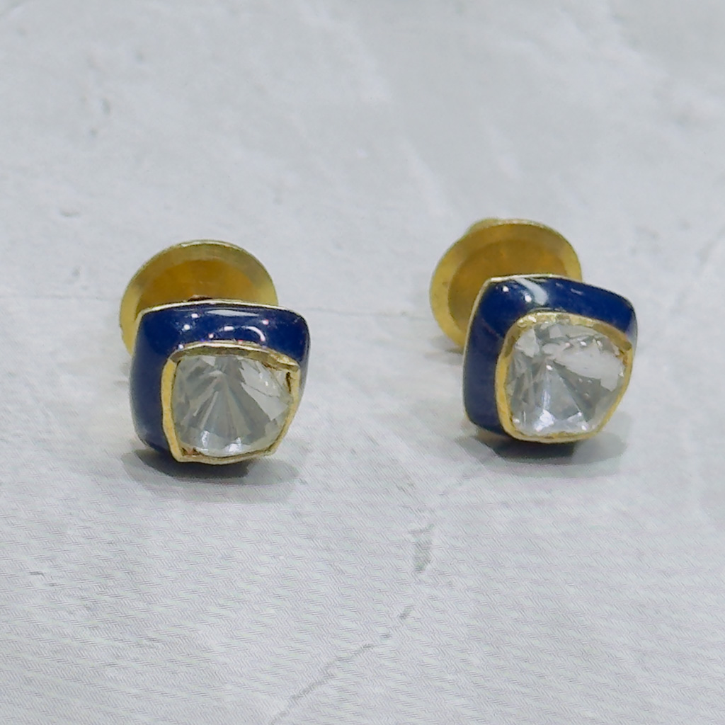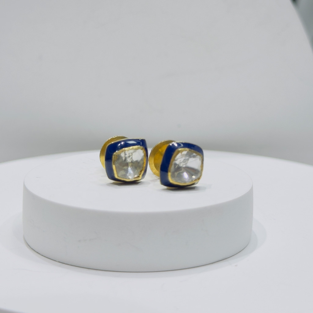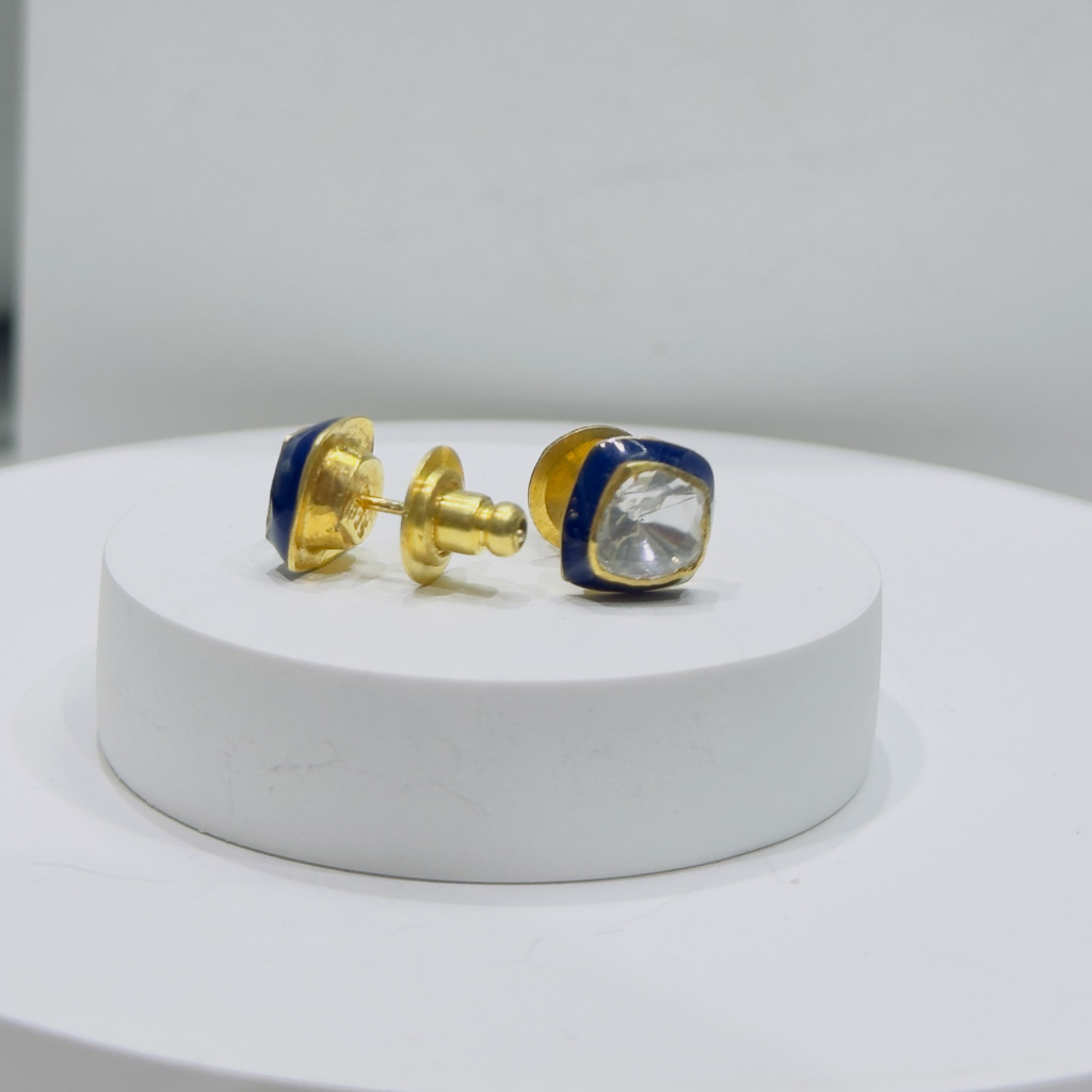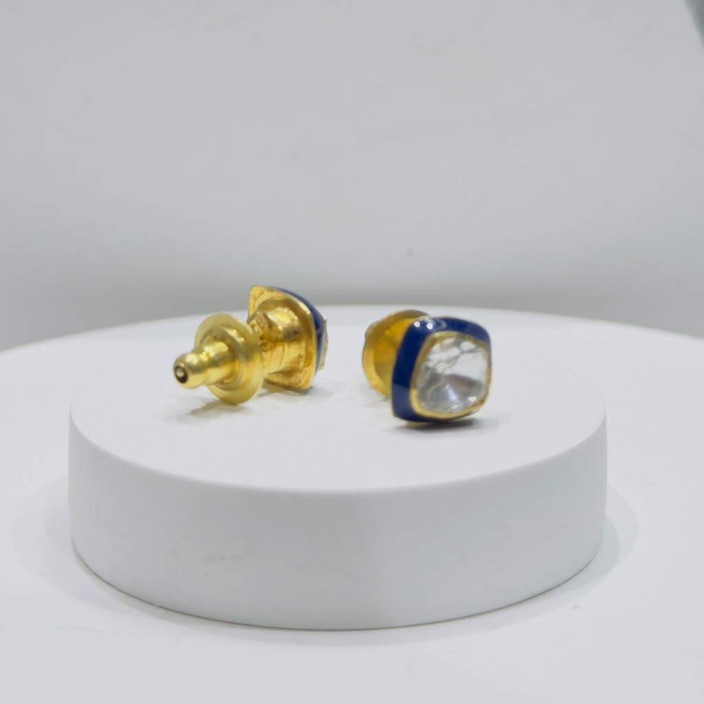 Inspired by the graceful geometry of spirals, these gold-polish studs embody the balance of structure and sparkle. Each earring features a central round CZ encircled by alternating pear-shaped polki-style stones, creating a fluid motion of light and texture. The handcrafted finish adds depth and warmth, making them ideal for both traditional celebrations and contemporary ensembles. Lightweight yet striking, these studs capture the essence of timeless sophistication in every turn.